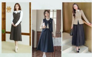 Bạn cũng có thể chọn một chiếc chân váy dài qua gối phối với áo thun tay dài hoặc áo sơ mi kín cổ. Set đồ này vừa lịch sự vừa thời trang, tạo cảm giác nhẹ nhàng, tinh tế.
